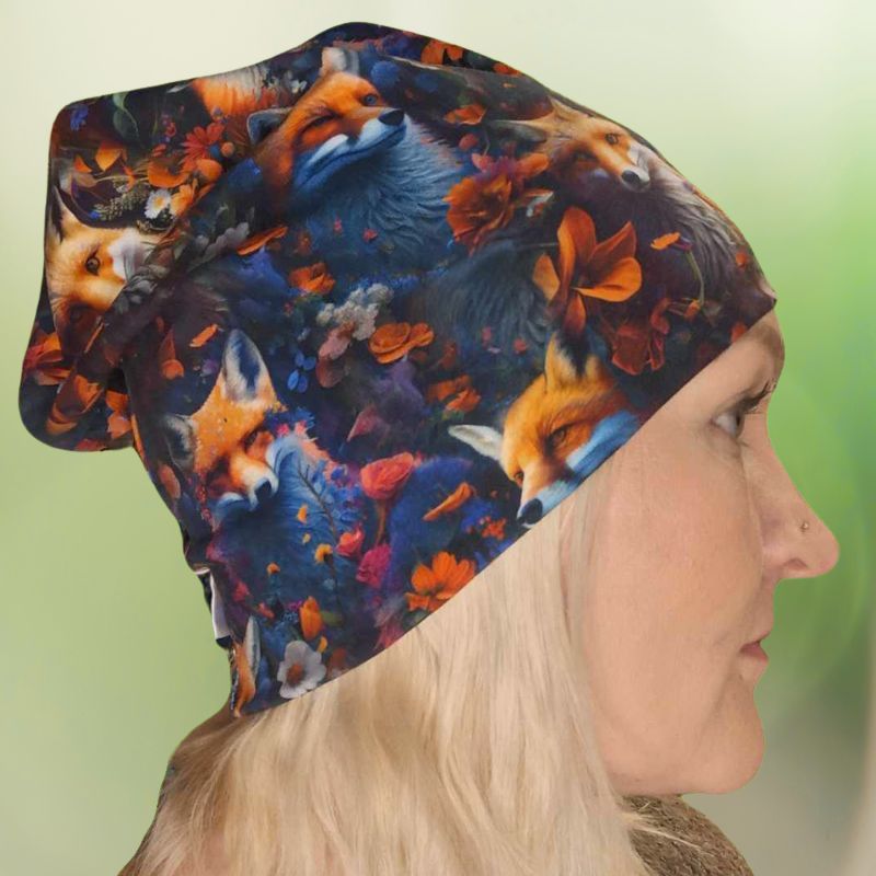 Aivan upea kettukuosi joka sopii kaikenikäisille kettufaneille - upeat värit ja ihanat ketut tekevät kuosista täydellisen! Laadukas pipo on ommeltu kaksinkertaisesta trikoosta, joten se lämmittää kivasti päätä syksyn ja kevään ulkoiluissa. Iso kuosi on aivan ihana lapsille ja laatu ja vastuullisuus saavat myös vanhemmat puolelleen!