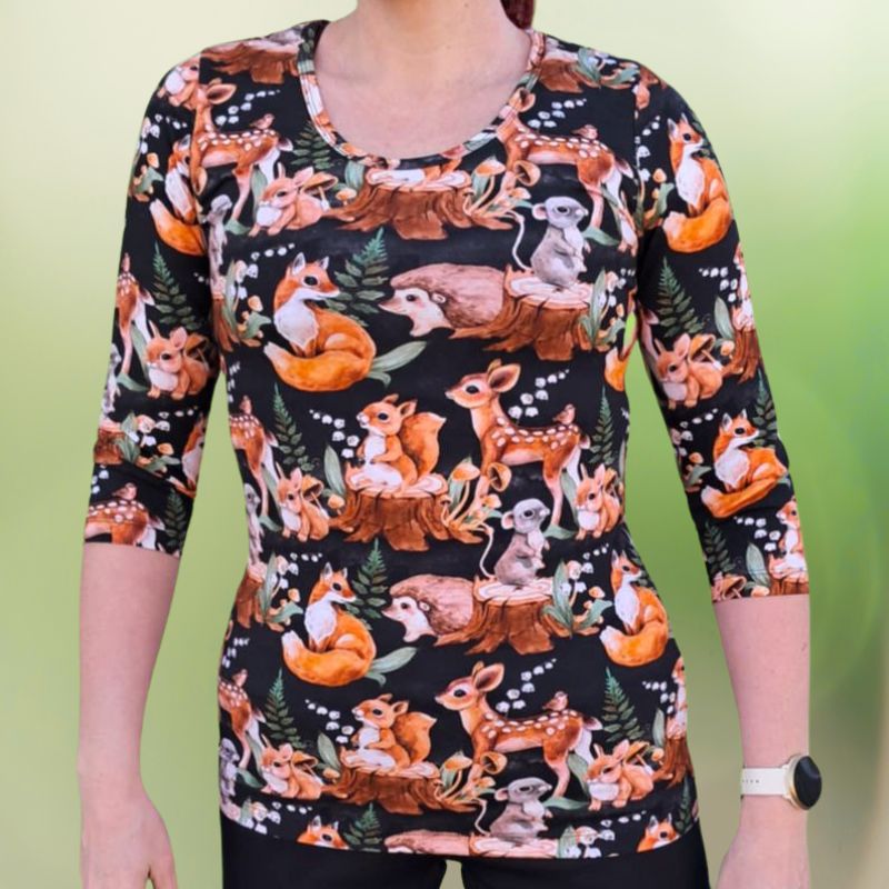 Suosikki Bambin ystävät ihastuttaa niin lasten- kuin naistenkin vaatteissa. Iloiset kuosit kuuluvat myös naisille! Olet aina yhtä tyylikäs tämä paita päälläsi ihan joka päivä. Laadukas ja joustava trikoo pitää ryhdikkyytensä ja värinsä kerrasta toiseen. Ihana kuosi, eikö totta?!