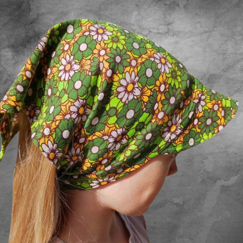 Ihastuttava, lipallinen huivi kesään. Lippahuivit tuovat suojaa auringonopaisteelta. Valmistettu yksinkertaisesta trikoosta.