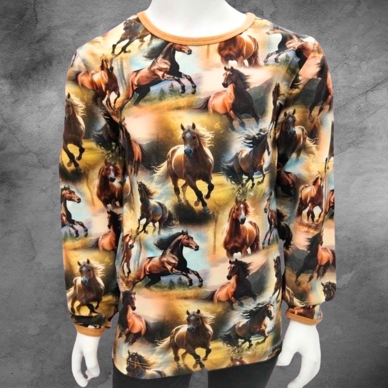 Tämä ihana hevospaita on täydellinen hevosia rakastavalle lapselle. Mikäs sen parempaa, kun saada päälleen omaan harrastukseen liittyvä paita, ja vieläpä näin upea. Tunnistaakohan kovimmat heppafanit minkä rotuisia hevosia tässä paidassa kirmailee? ;) Sampsukan lasten paidat ovat taatusti värikkäitä, laadukkaita ja vieläpä super mukavia päällä, kotimaassa tuotettuna tottakai!