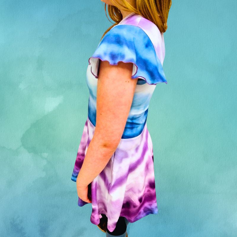 Lovely butterfly sleeves on the dress. Colour and joy for everyday life and celebration! These are made of jersey, which is usually used in children's clothing. Jersey has Öko-tex 100 certification to ensure that no harmful substances are used. In this way, we can safely produce joyful and colourful clothes!