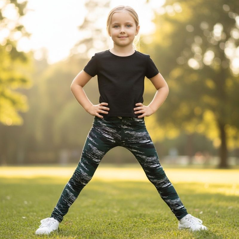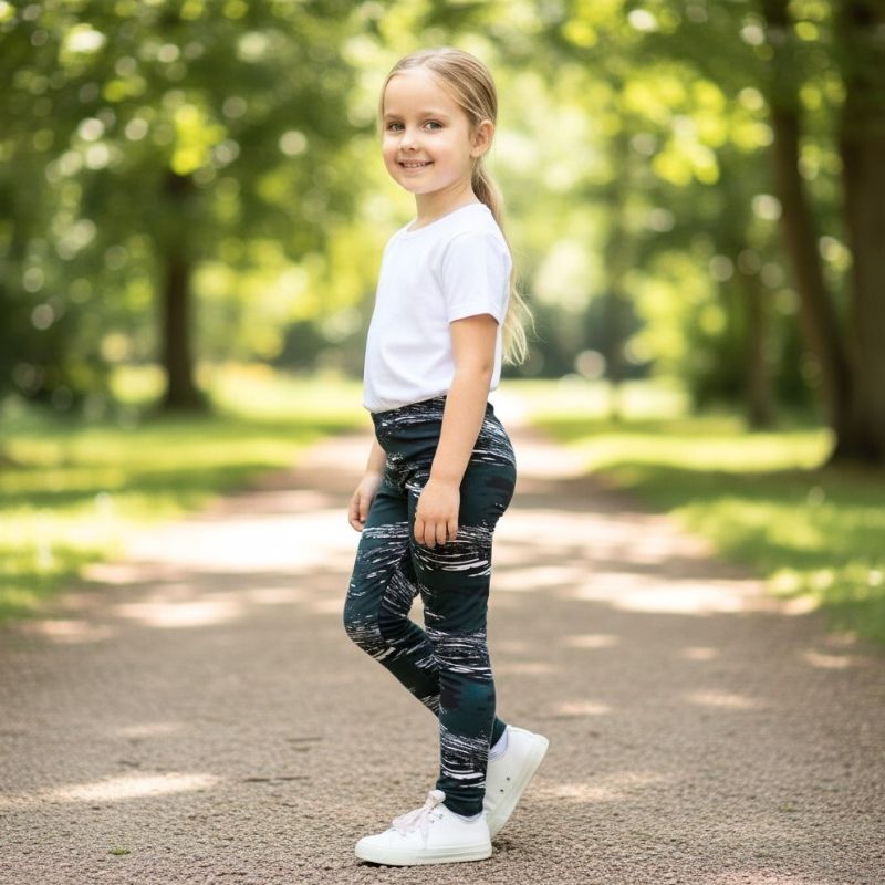 Materials are of high quality and flexible so that these are comfortable to use. Our leggings are made of sweat. Elastane gives elasticity and durability to the leggings. We think that children's clothes must be able to withstand washing and wearing. Sweat has Öko-tex 100 certification to ensure that no harmful substances are used. It is a safe choice for children's sensitive skin.