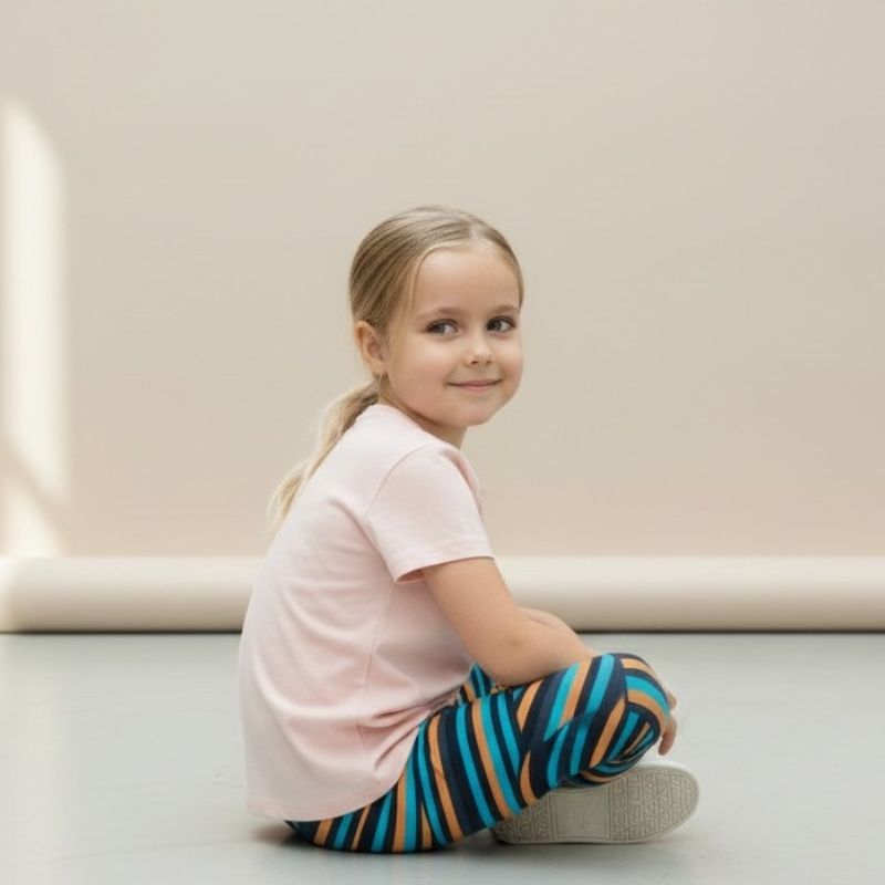 Laadukas ja joustava GOTS -sertifioitu elastaanitrikoo - tuntuu miellyttävältä ihoa vasten ja joustaa liikkeen mukana – elastaani tuo leggingseihin joustavuutta, joten leggingsit on mukava käyttää ja ne säilyttävät muotonsa pesuista toiseen.