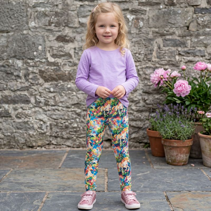 Materials are of high quality and flexible so that these are comfortable to use. Our leggings are made of stretch jersey. Elastane gives elasticity and durability to the leggings. We think that children's clothes must be able to withstand washing and wearing.