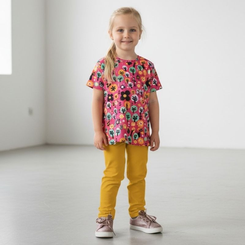 Lisää pukeutumiseen iloa ja väriä näillä kirkkaan keltaisilla trikoolegginseillä! Nämä pehmeät ja joustavat leggingsit ovat täydellinen valinta aktiiviseen arkeen – leikkiin, päiväkotiin tai vaikka synttäreille.