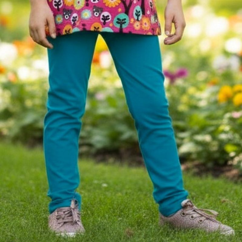 Nämä petroolinväriset trikoo-legginsit yhdistävät pehmeän käyttötuntuman ja kauniin sävyn, jonka avulla arjen asut näyttävät heti astetta tyylikkäämmiltä. Stretch-materiaalin ansiosta legginsit joustavat liikkeen mukana ja tuntuvat miellyttävältä ihoa vasten – täydellinen valinta päiväkotiin, leikkeihin tai vapaa-ajan touhuihin.