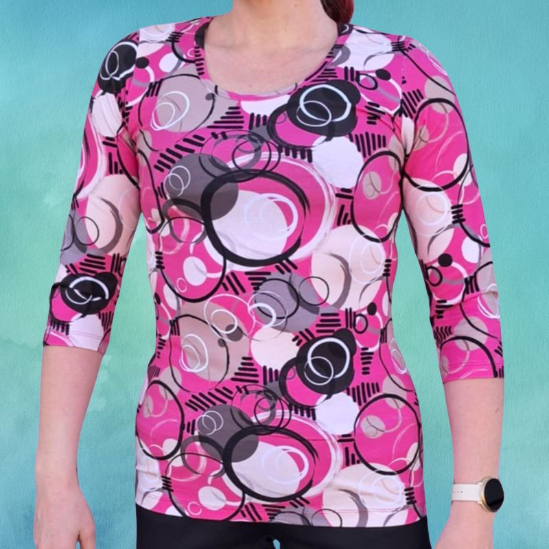 Laadukkaat materiaalit ovat vaatteidemme lähtökohtana, niiden täytyy olla myös joustavia. Trikoo sisältää puuvillaa ja elastaania. Elastaania hieman siksi, että se tuo tunikaan joustavuutta, kestävyyttä ja auttaa säilyttämään muotonsa. Paidan malli hieman levenee lantiolle.