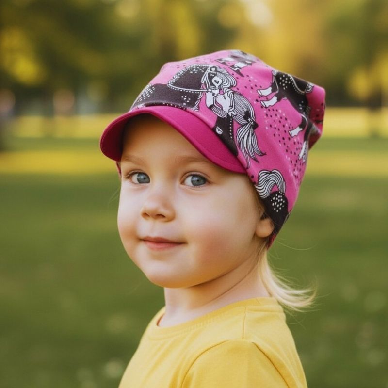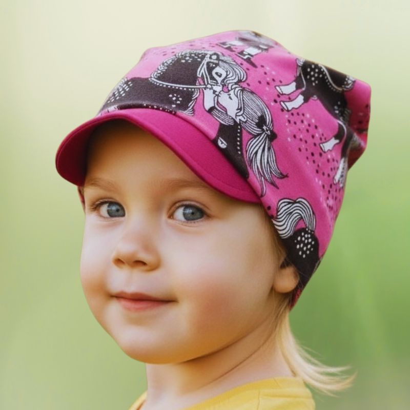 Cute hats for kids of all ages. There are up to five sizes of beanie caps available: 2-6 months (40-42cm), 1-2 years (47-49cm), 3-4 years (50-51cm), 4-5 years (52-53cm) and over 6 years (54-55cm). Children's largest size is usually the most suitable for children over the age of 6, but many women choose it for their own use. Measure the child's head circumference and choose the most appropriate size.