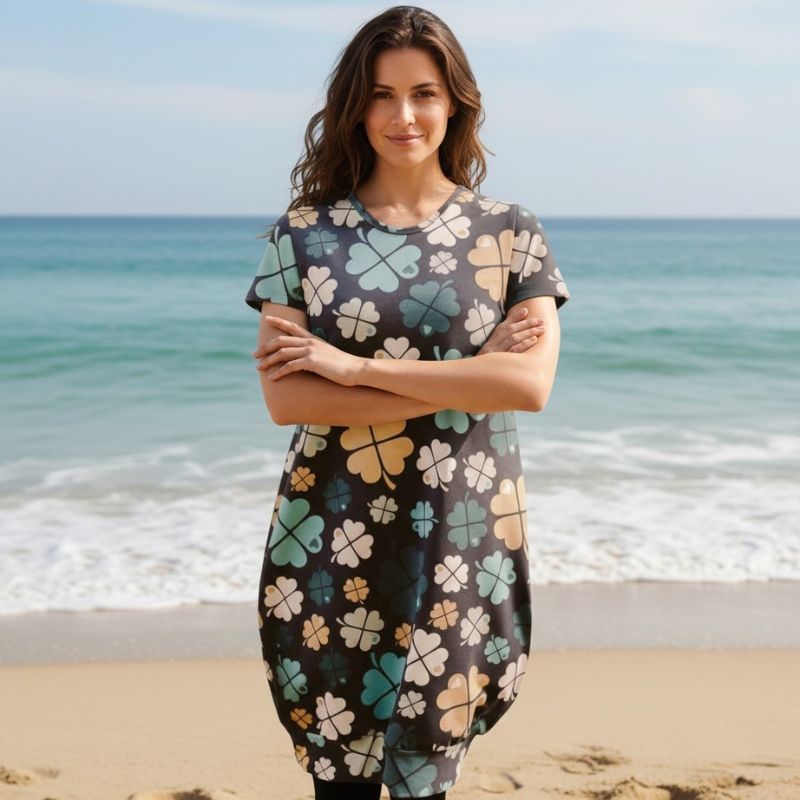 Pallotunika Apilat tuo pukeutumiseen luonnon raikkaan tunnelman ja kepeän ilmeen. Kaunis apilakuosi symboloi onnea ja positiivisuutta – täydellinen valinta, kun haluat yhdistää mukavuuden ja iloisen tyylin.