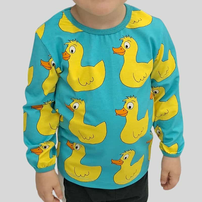 Ihastuttavan räikeän värikäs ja leikkisä ankkapaita - Täydellinen kuosi lasten paitoihin! Ihanat värit ja kiva kuosi piristävät arkista pukeutumista. Laadukas materiaali takaa sen, että paita sopii loistavasti arkisiin puuhiin. Laatua ja iloa arkeen!