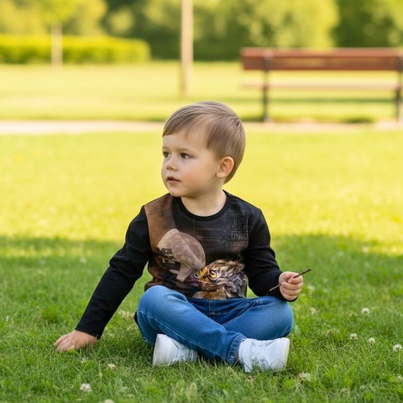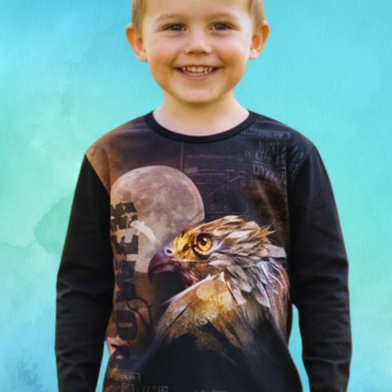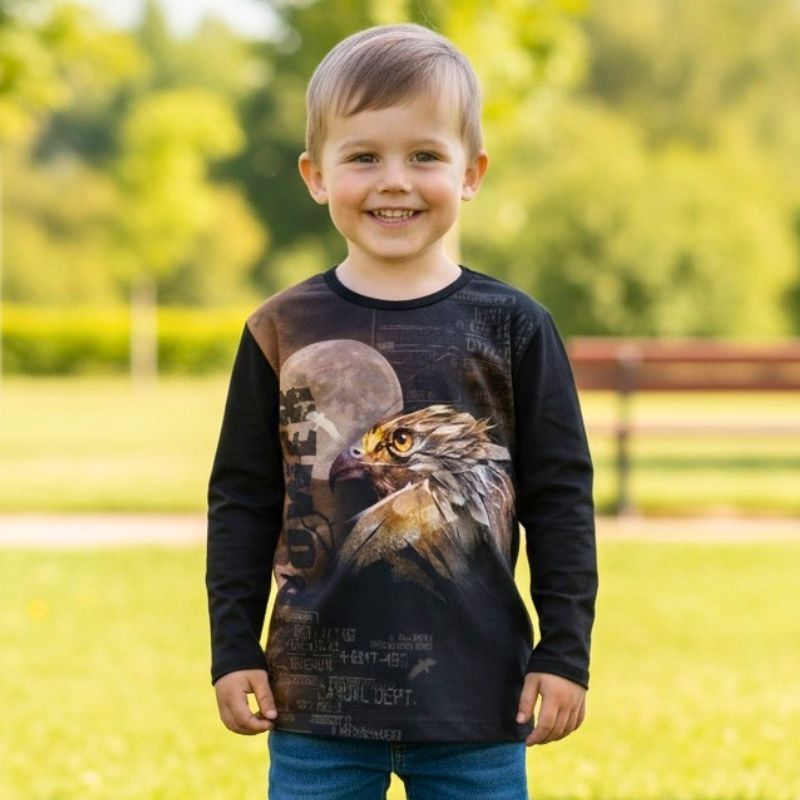 Anna lapsen mielikuvituksen lentää luonnon villiin maailmaan tämän hurmaavan lasten paidan avulla! Iloinen ja eläväinen kotka -kuosi tekee pukeutumisesta hauskaa ja tarjoaa persoonallisen ilmeen jokapäiväiseen käyttöön – olipa ohjelmassa sitten päiväkoti, koulu tai vapaa-ajan leikit.