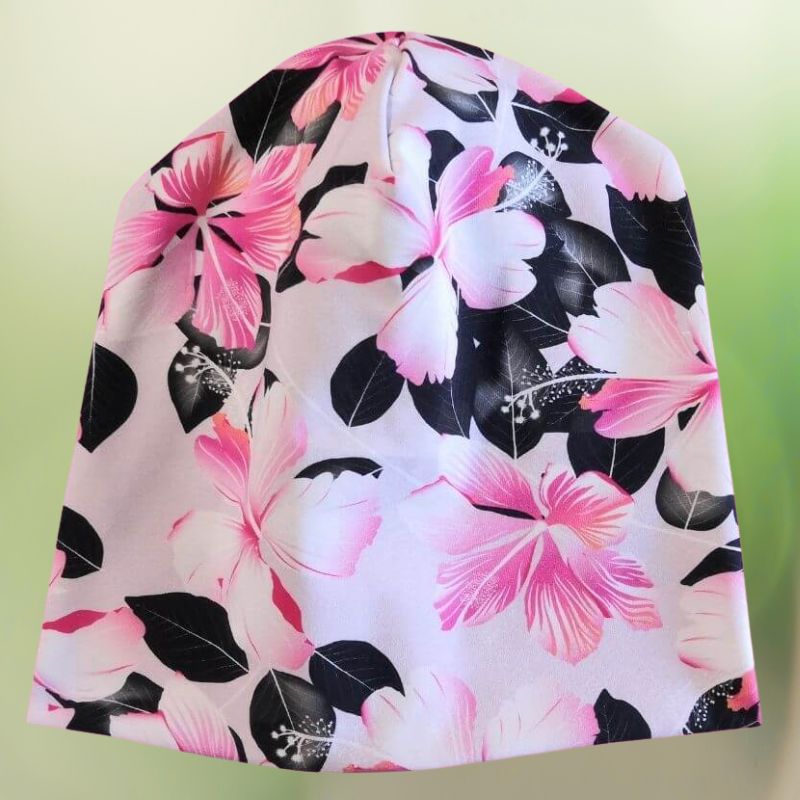 Vau, ihania trooppisia kukkia tässä pipossa! Tropiikin kauneus piristää kivasti viileänä kevät- tai syyspäivänä, silloin on kiva vetäistä päähän laadukas trikoopipo ja lähteä ulkoilemaan. Väriä ja iloa elämään, laadusta ja mukavuudesta tinkimättä!