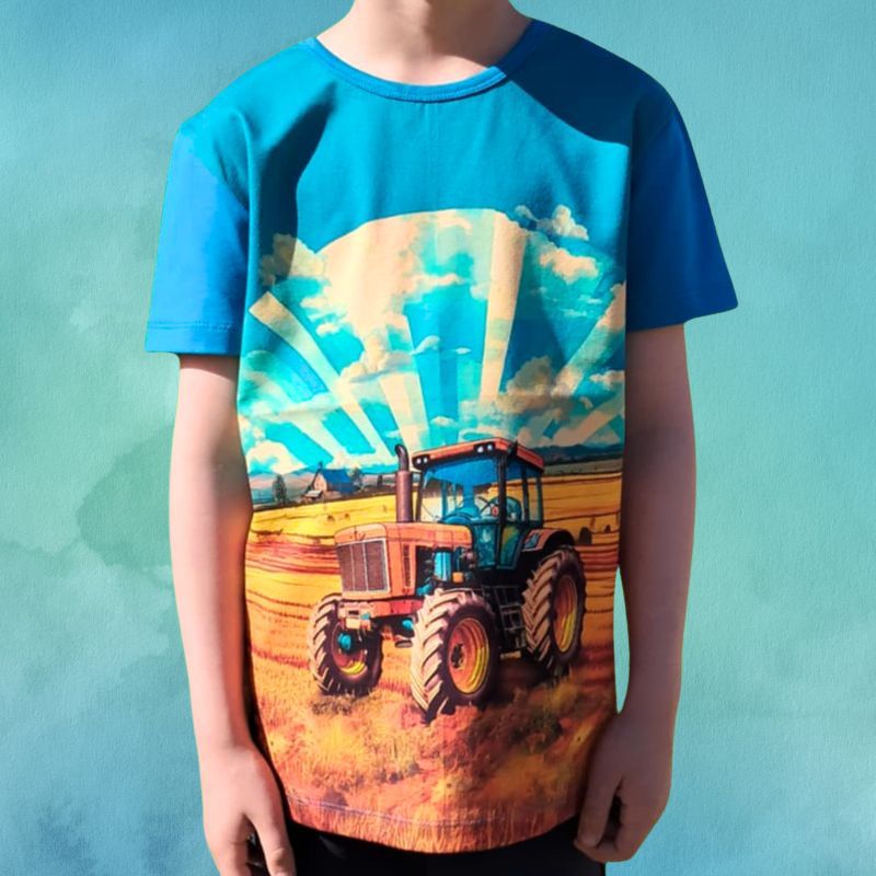 Peltotraktori -lasten paita on valmistettu kestävästä puuvillatrikoosta. Tämä traktorikuosinen lasten lyhythihainen paita on laadukas, joustava ja miellyttävän tuntuinen päällä.