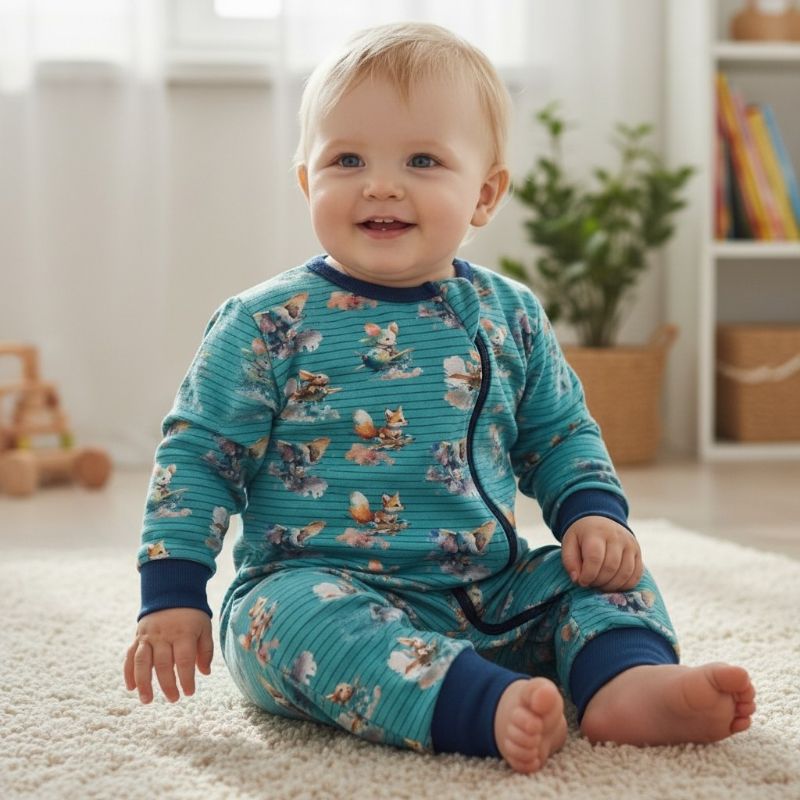 Suloinen Kettu ja ystävät-kuosi vie pienen seikkailijan metsän rauhaan, missä ketut, oravat ja metsän muut ystävät odottavat leikkihetkiä ja tutkimusretkiä. Tämä vauvahaalari yhdistää Sampsukan rakastetun kuosimaailman pehmeään mukavuuteen ja arkikäytön helppouteen — juuri sellaisenaan, että pukeutuminen muuttuu pienelle ilon hetkeksi.