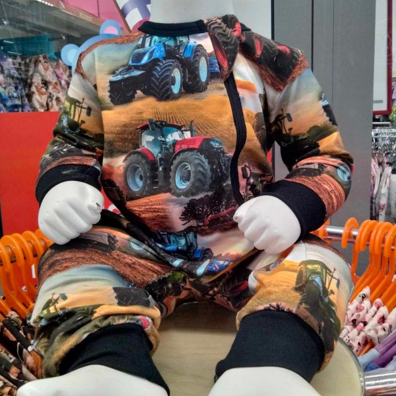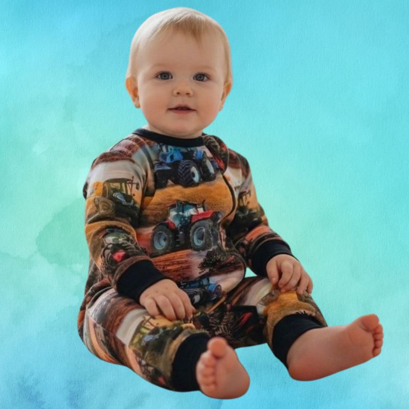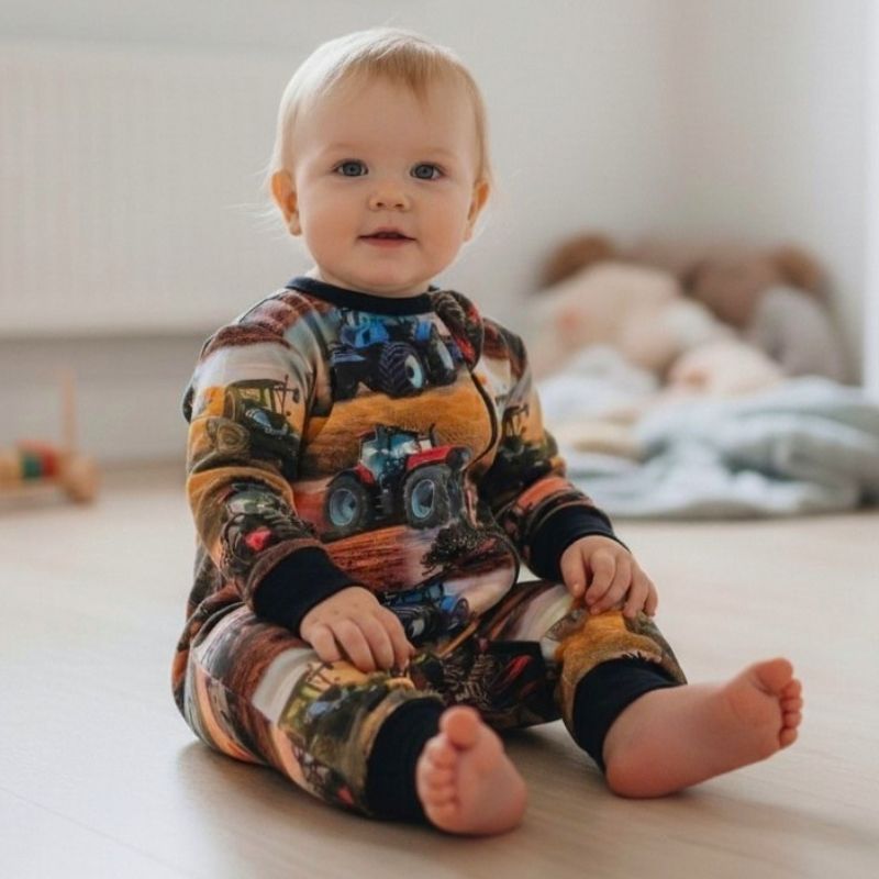 Pellolla huristelevat traktorit, heinät heiluvat ja maaseudun kesä herää eloon – tämä vauvahaalari on kuin pieni pala pelto-idylliä vauvan arjessa. Traktorit pellolla -kuosi ihastuttaa kaikkia pikku konefaneja ja tuo pukeutumiseen iloista maalaistunnelmaa.