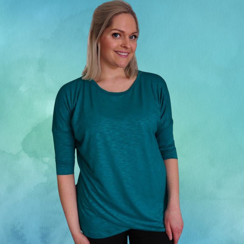 Tyylikäs ja hyvin laskeutuva ihanan viileältä iholla tuntuva paita jokaiseen tilanteeseen. Vartaloa imarteleva malli saa sinut näyttämää entistä upeammalta. Petroolin sävy saa silmäsi hehkumaan. Yhdistele vapaasti erilaisten alaosien kanssa.